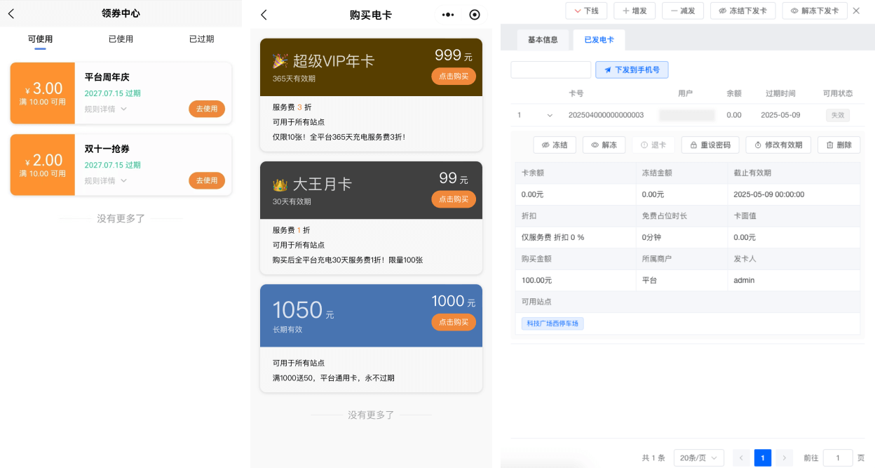 支持优惠券领券功能,优惠券可指定使用场站、使用时段。