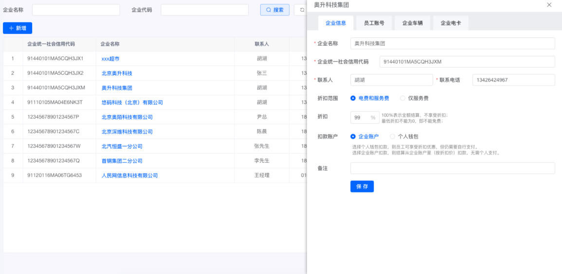 企业客户有专有企业账户,可进行充值,并供企业内部员工使用。同时,可配置企业车辆,根据插枪提供车架VIN码进行充电。