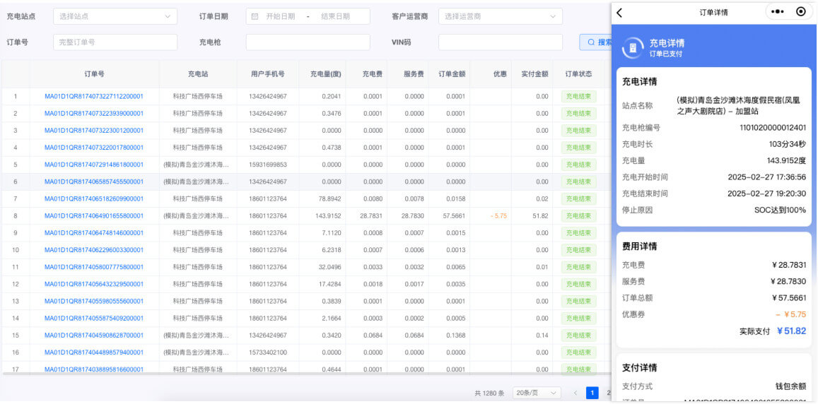 充电订单、第三方平台的全量订单、售后退款订单、钱包充值订单等管理,对于充电异常订单进行及时处理,并开展售后服务。