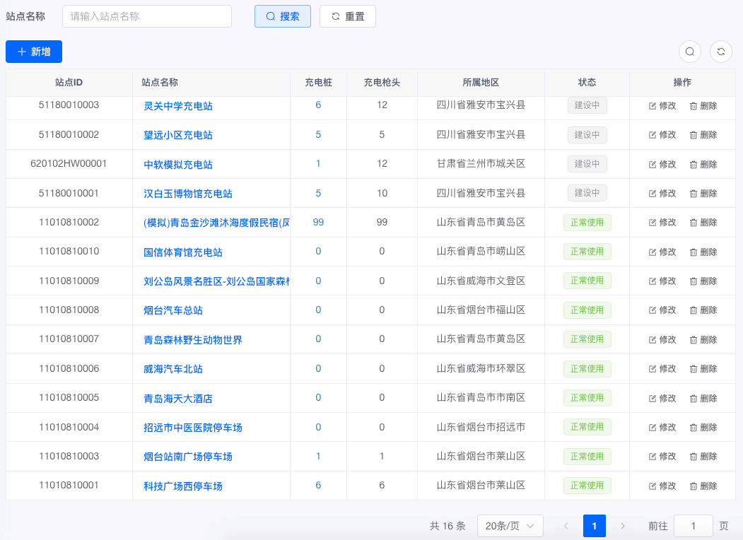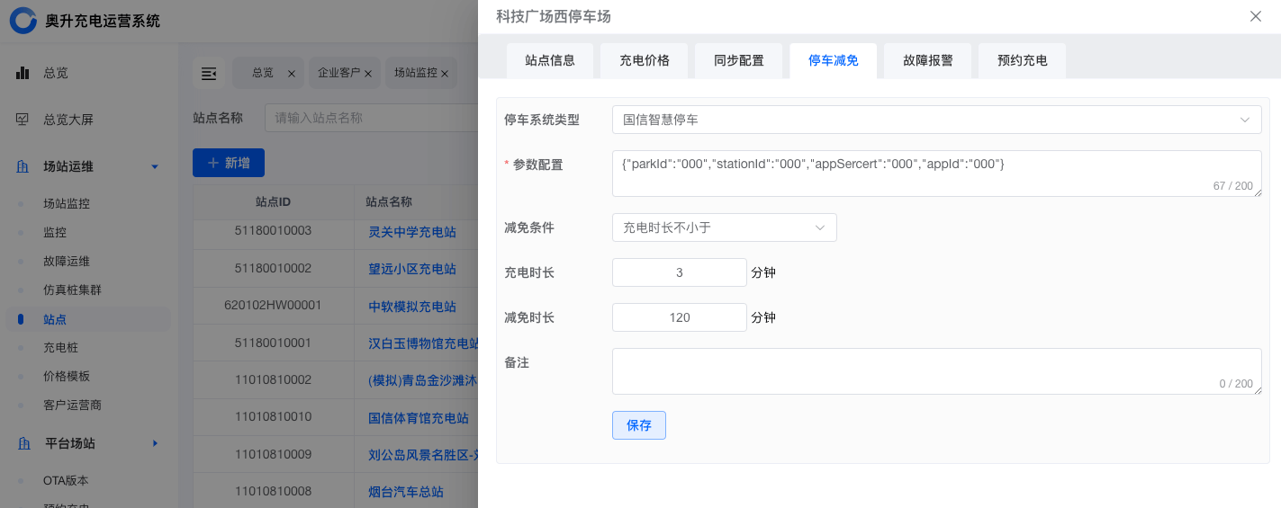 维护管理站点的基本信息以及其下桩枪配置,用于充电用户端的显示,并可同步给第三方平台与市政监管平台。