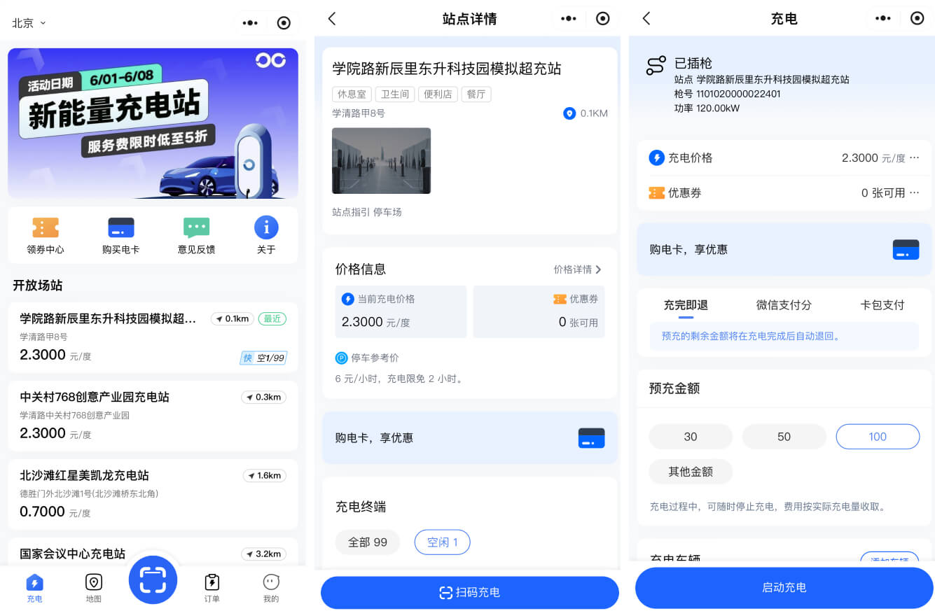 支持电站电卡功能,电卡可储值可享折扣。商户可发行自有站点的电卡,结算直接入账商户账户。